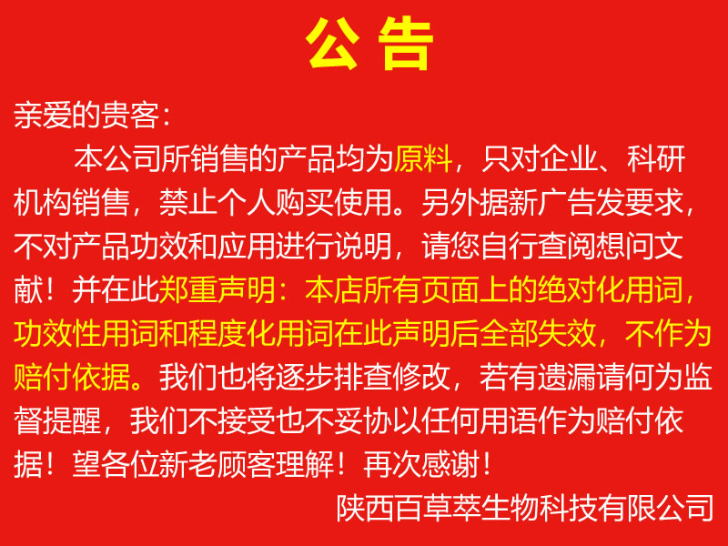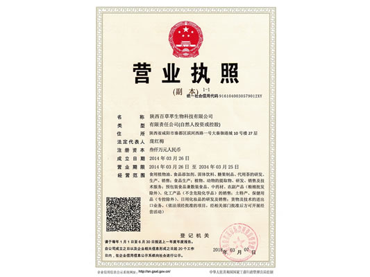 陜西百草萃生物科技有限公司,位于陜西省咸陽市秦都區濱河西路1號大秦御港城,公司成立于1996年,主要從事天然植物種植、研發(fā)、生產、加工、銷售為一體的高科技企業(yè)。主營醫(yī)藥原料、保健品原料、化妝品原料,精細化工原料。公司致力于人類健康保護事業(yè)“ 以科技為動力,以質量求生存” 的本質,依托陜西高新科技技術人才和科研優(yōu)勢,已形成多學科、全方位、高層次的技術管理精英團隊。充分利用秦巴山區的天然藥物資源,歷經多年發(fā)展為打造百草萃生物品牌奠定了基礎。